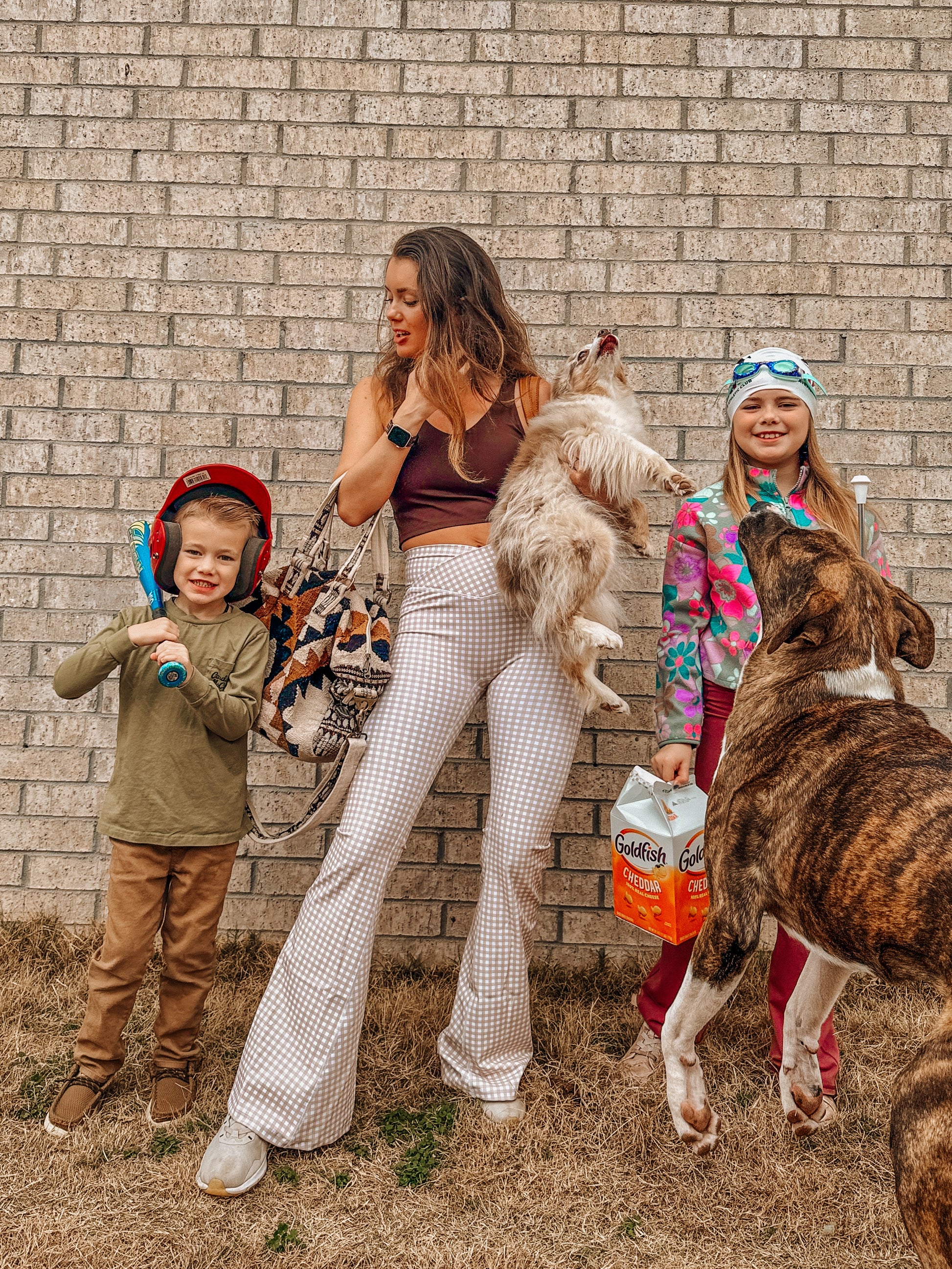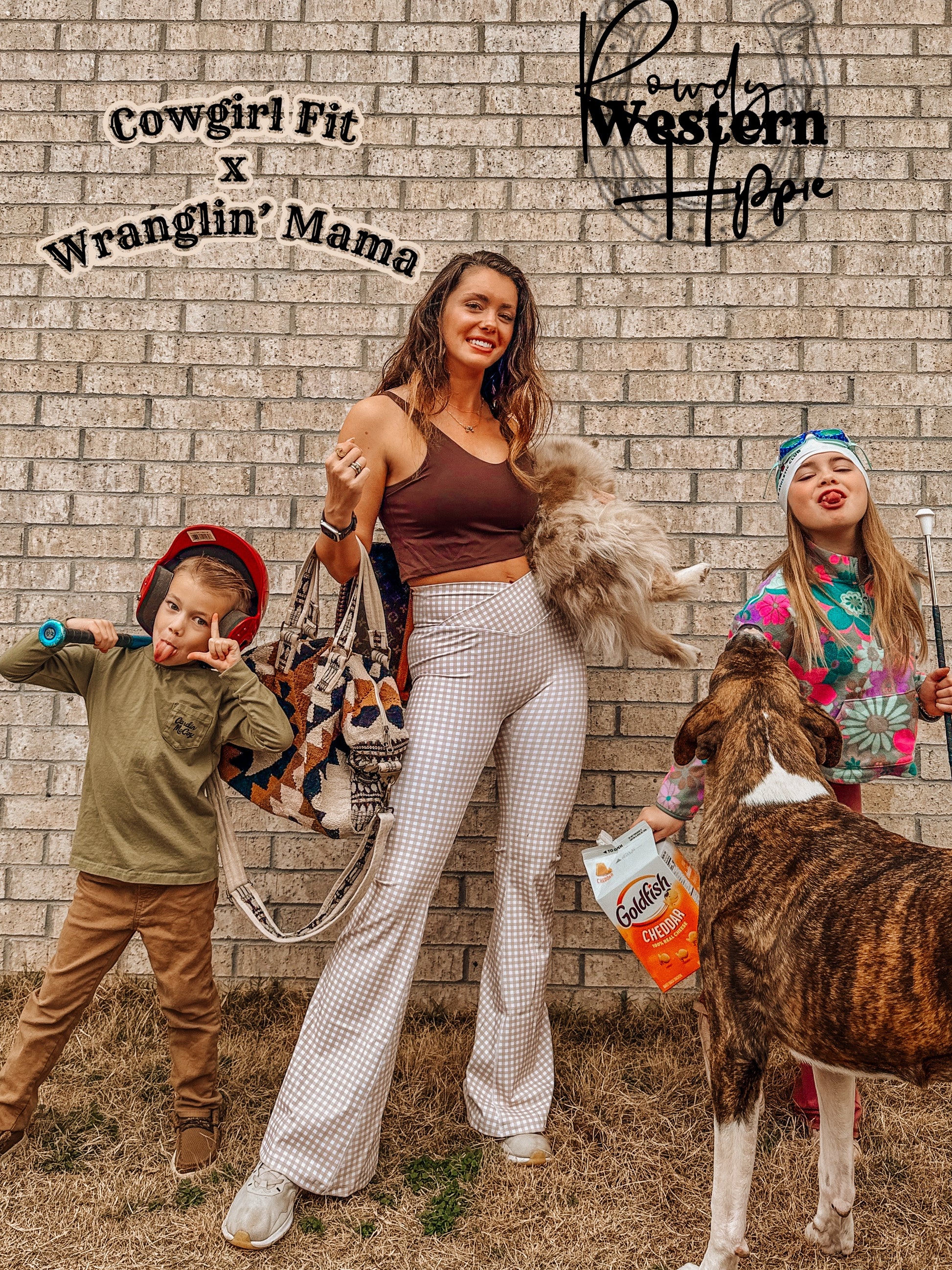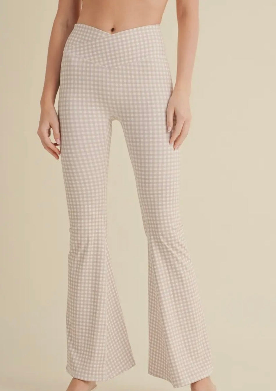 Gingham print high waist crossover flare leggings with a flattering, seamless look.