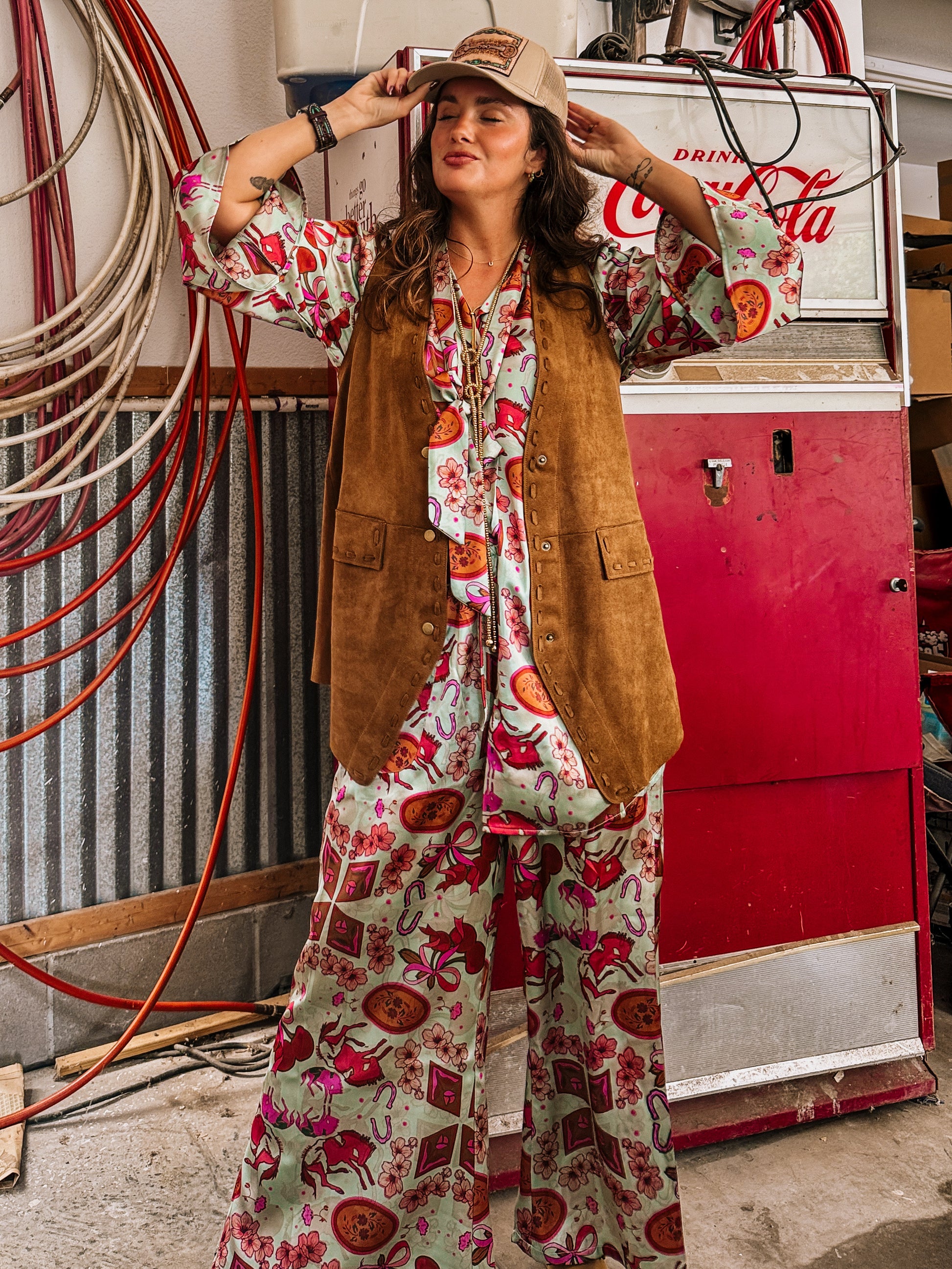 TOP- TIE NECK DETAIL WITH SLITS ON THE SIDES