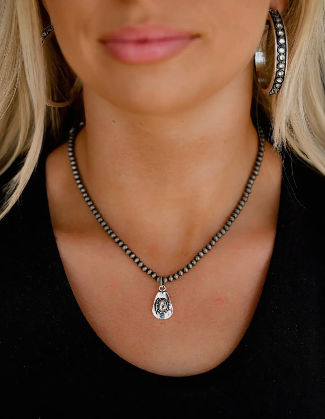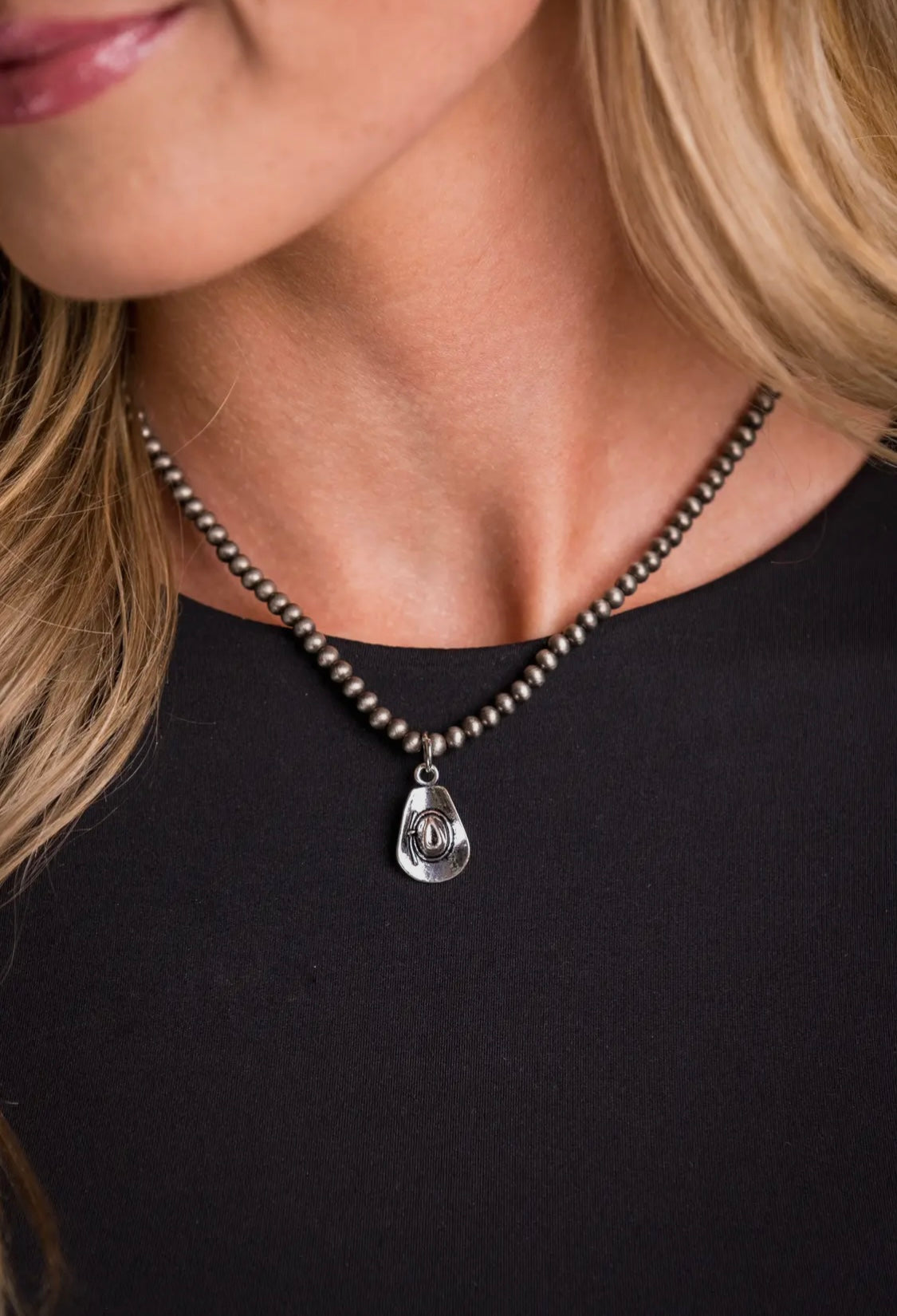 Dainty Faux Navajo Pearl Necklace with cowboy hat Charm