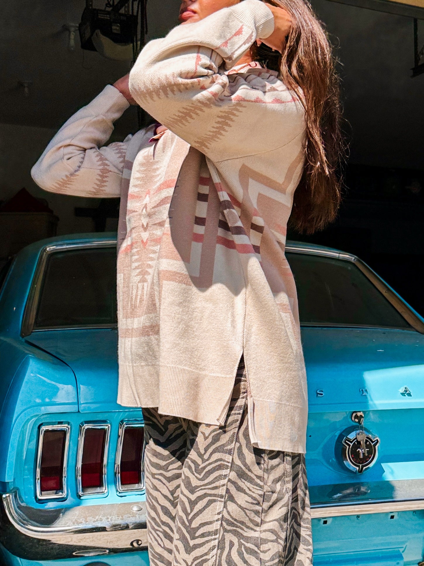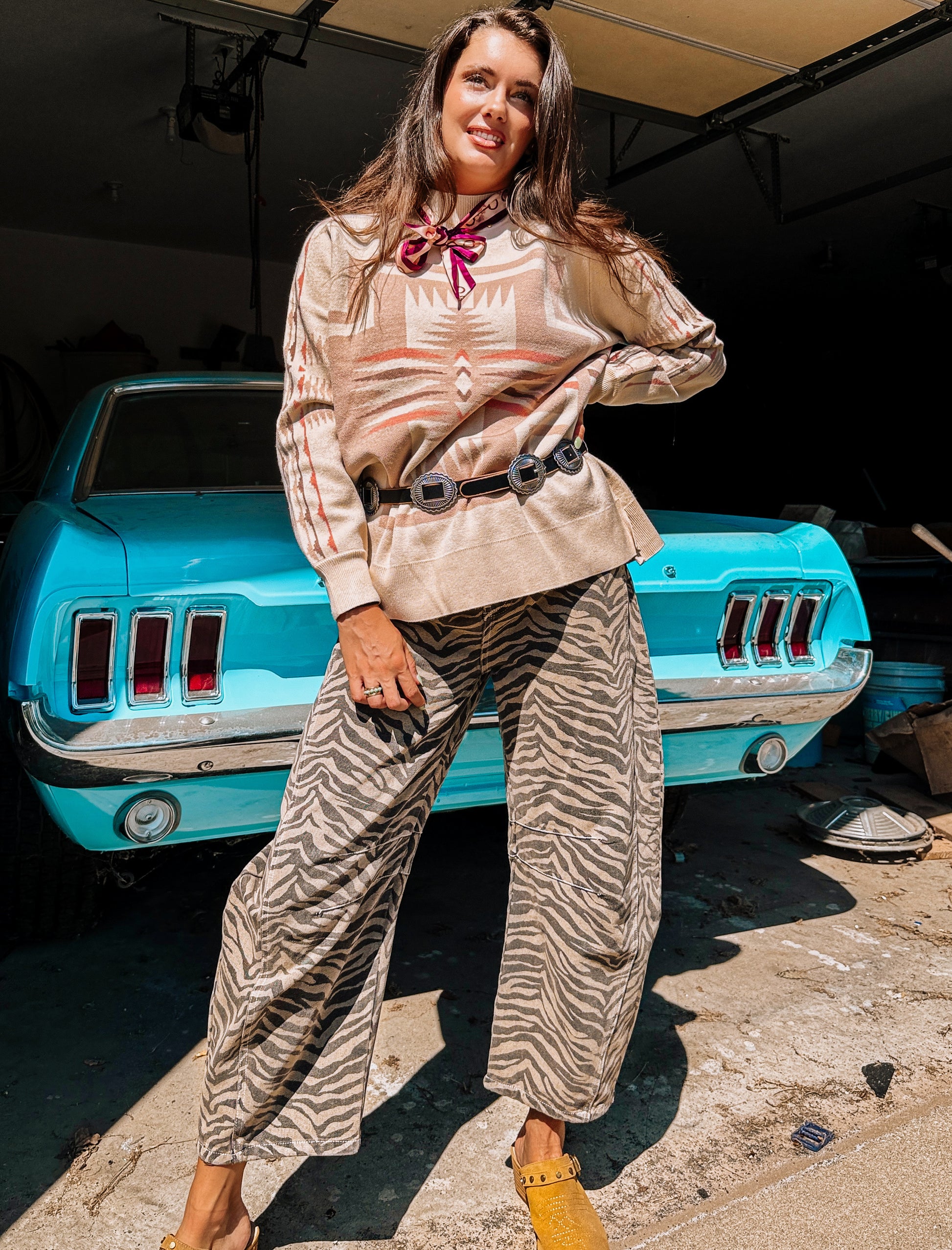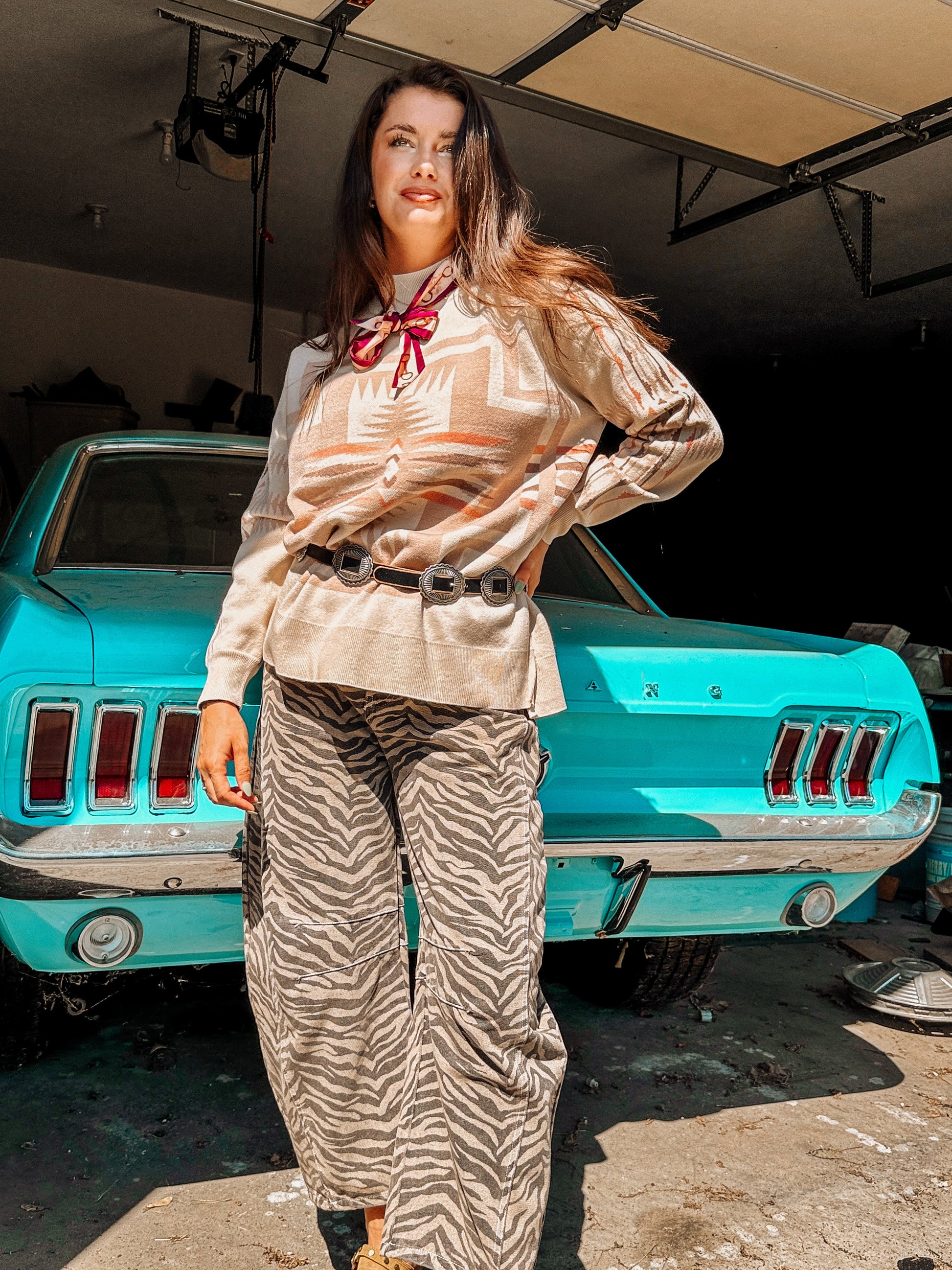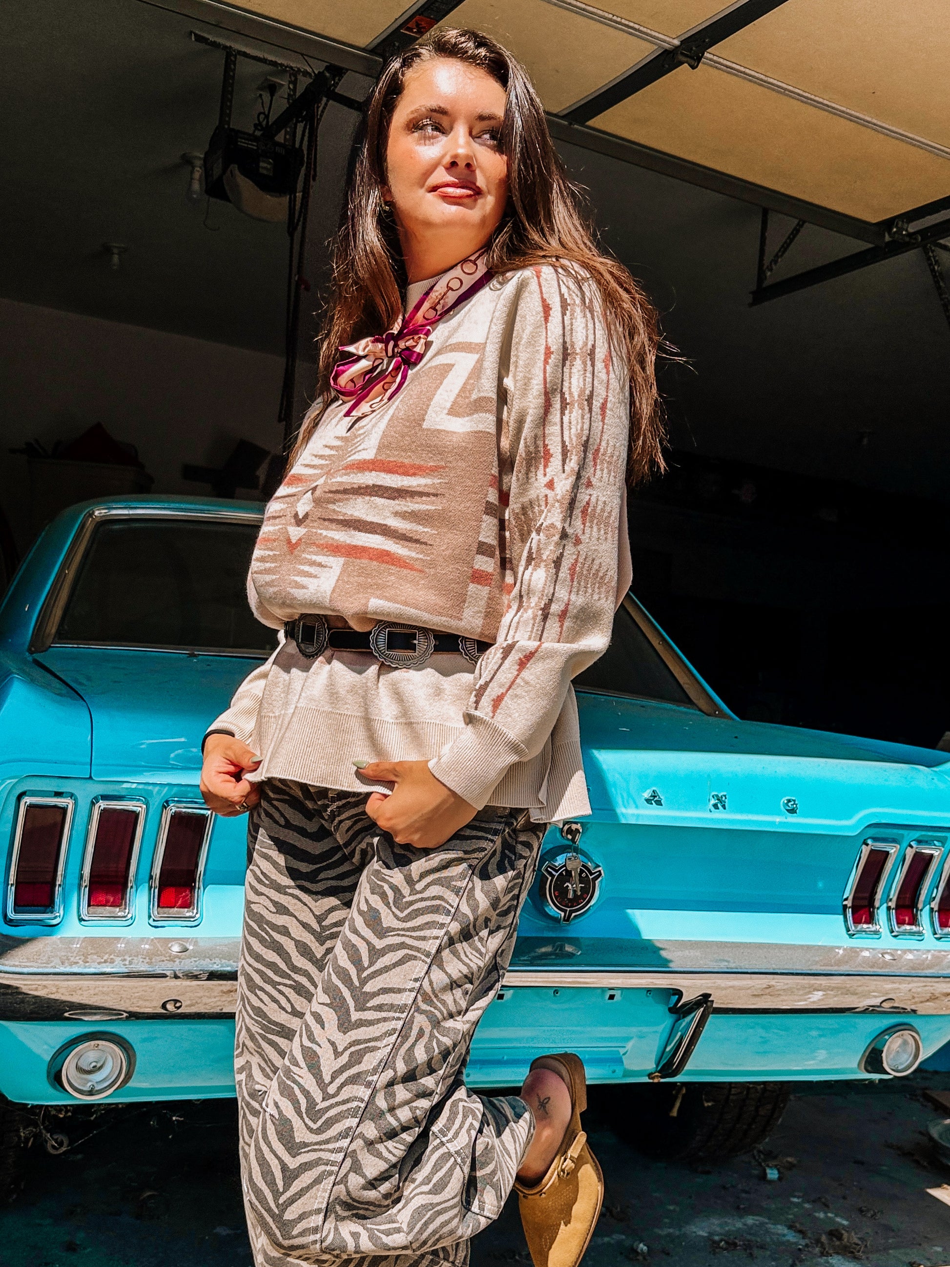 Creamy base with taupe and blush hues for a beautiful, feminine western vibe. There is no other sweater out there that describes the Blush Out West style better than this one!