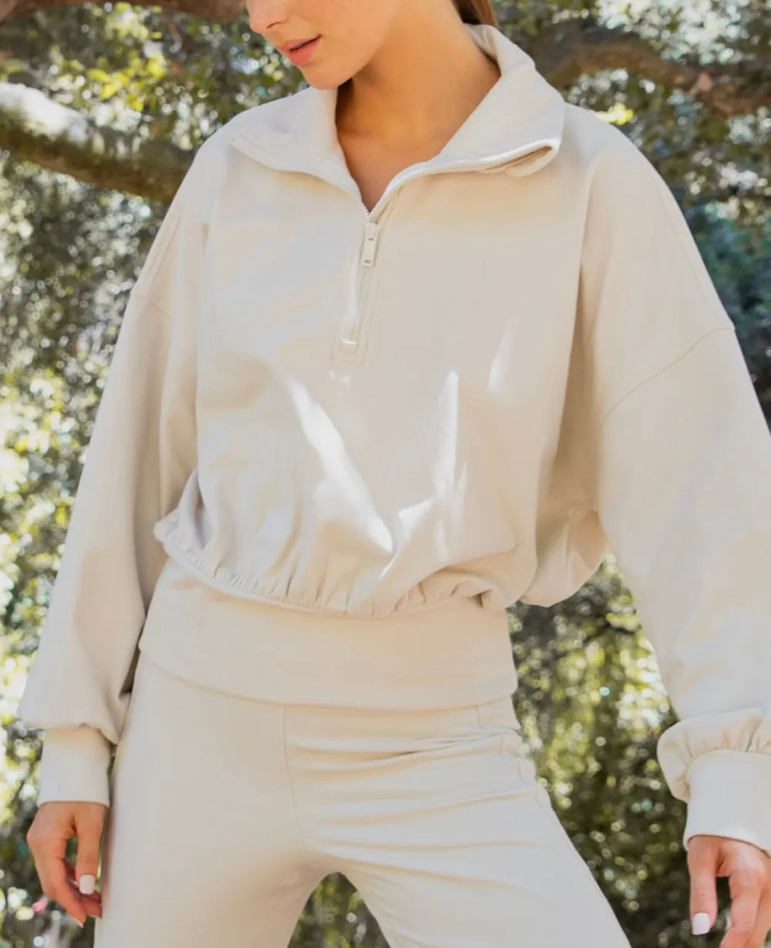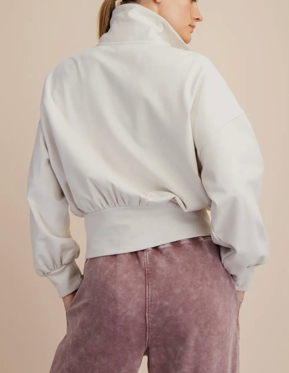 Made from luxuriously soft and warm brushed fabric, this top is perfect for keeping cozy on chilly days. Its 1x1 rib texture adds a stylish touch, while the relaxed fit and bubbled shape ensures a flattering silhouette. With a slightly cropped length and quarter zipper closure featuring a trendy mock neck collar, this top effortlessly blends comfort and style.