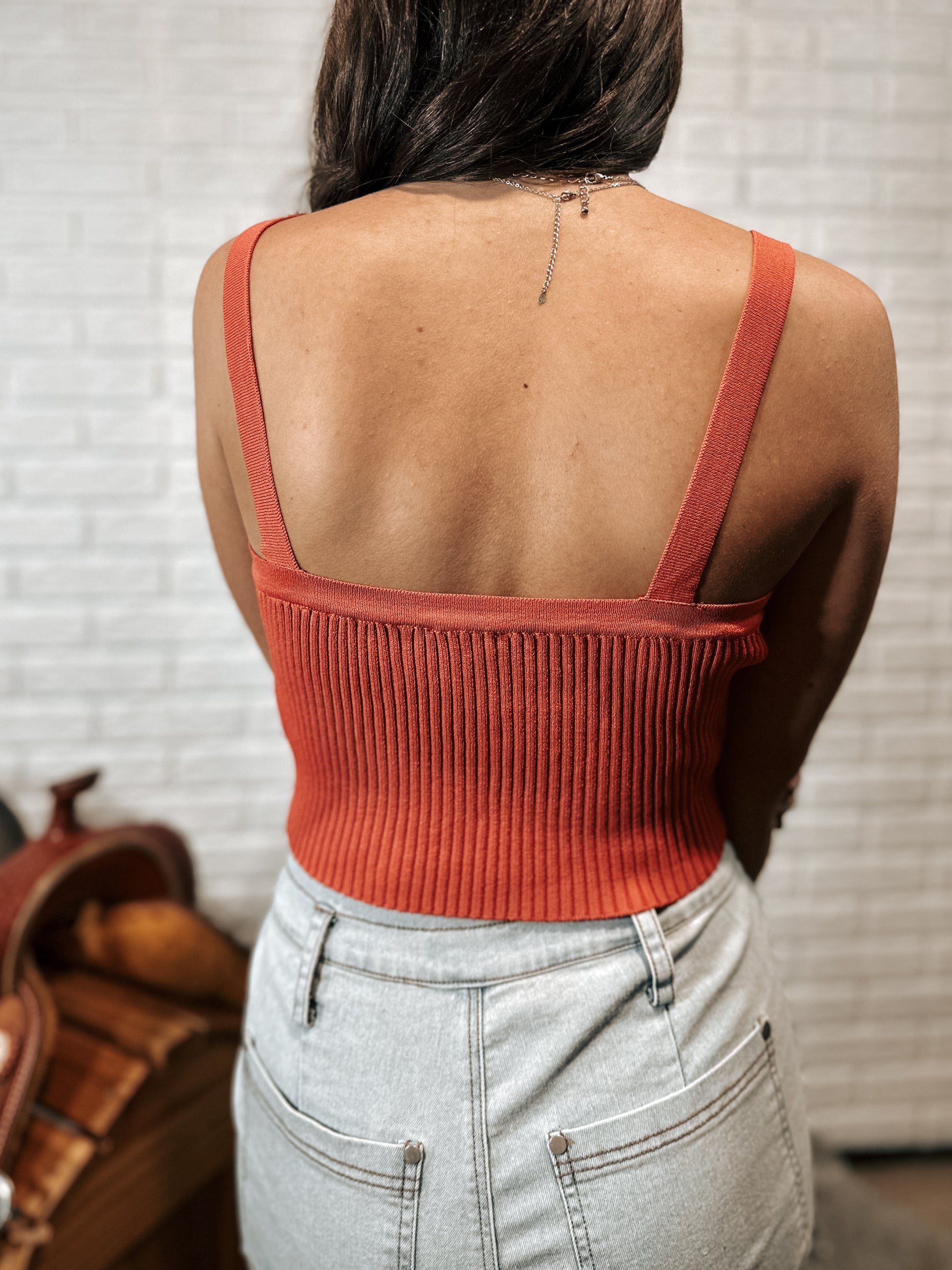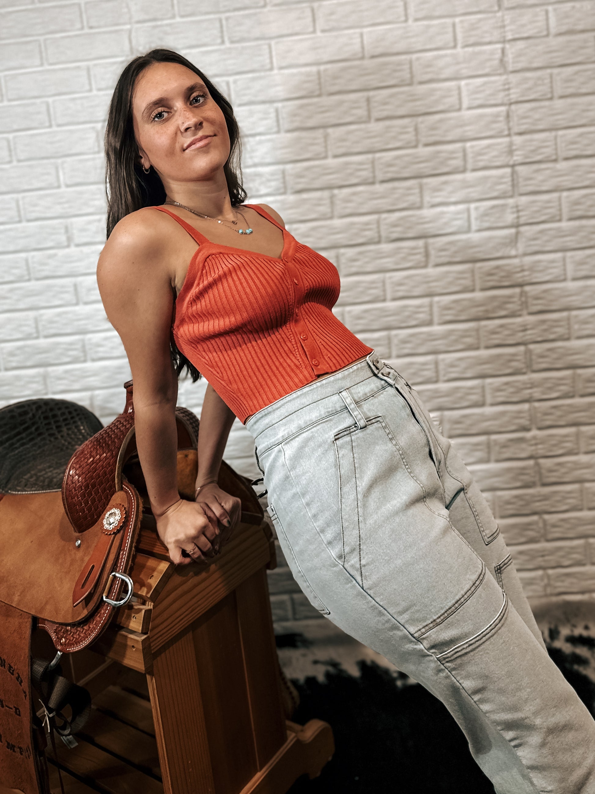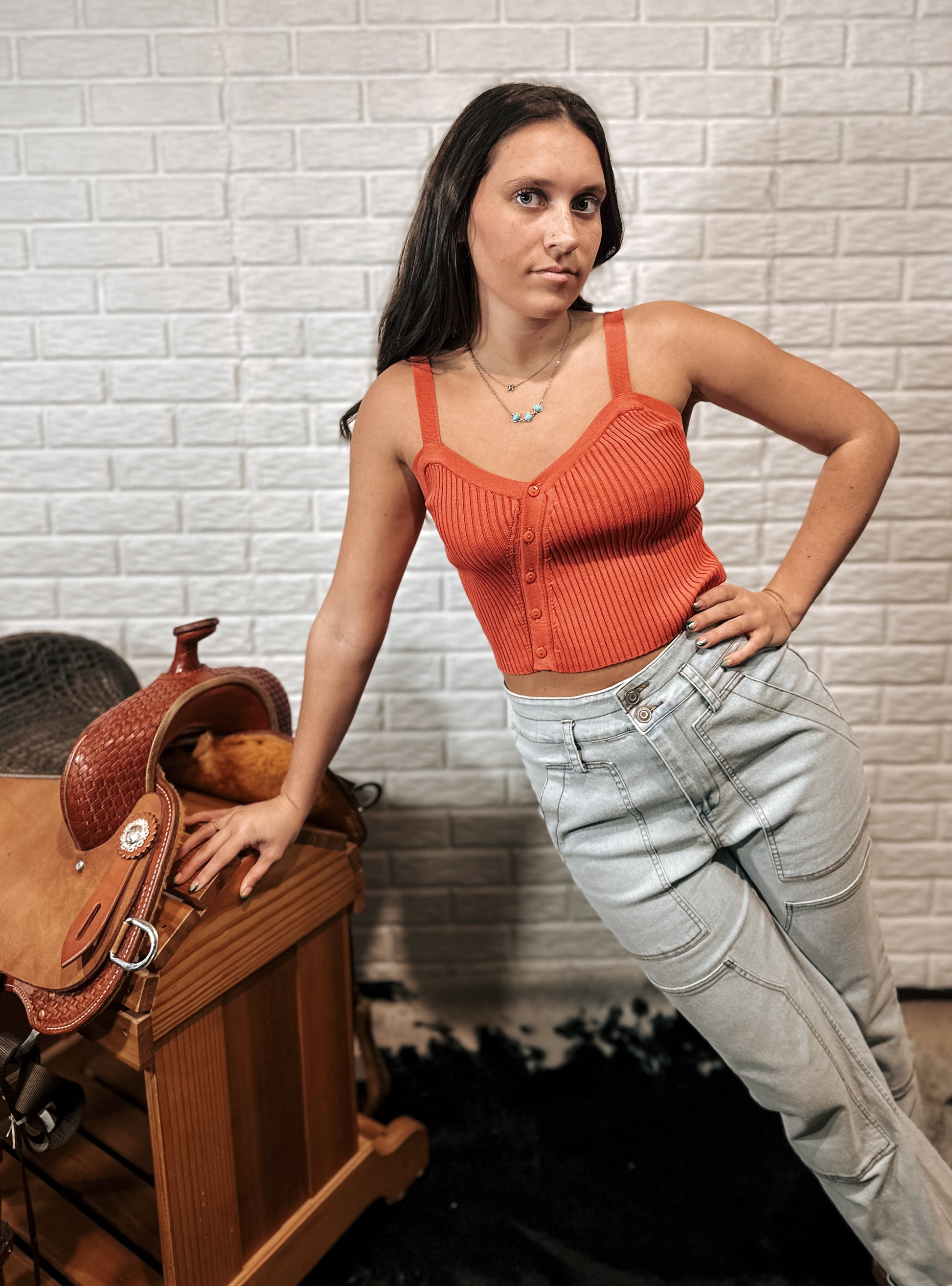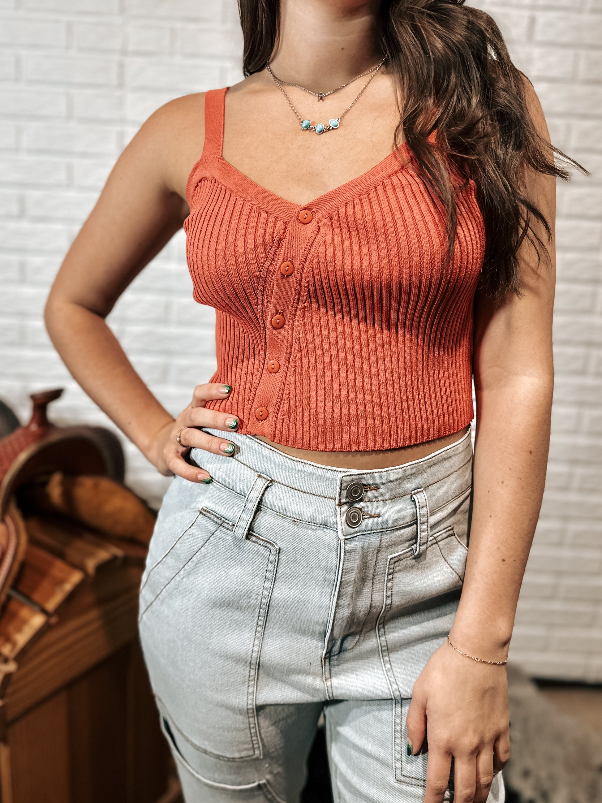 Button Crop Top runs true to size. Model 5.4” wearing a small.