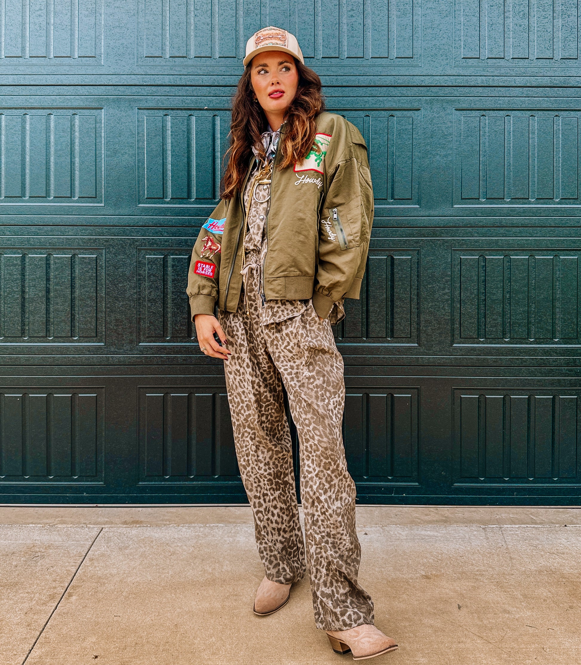 Western-inspired bomber jacket with bold cowboy embroidery and "West Coast Rodeo" lettering. Lightweight nylon shell with ribbed cuffs and hem, zip front, side pockets, and sleeve pocket. Available in Olive Green and Black. Perfect statement piece for boutiques, festival fashion, and streetwear collections.
