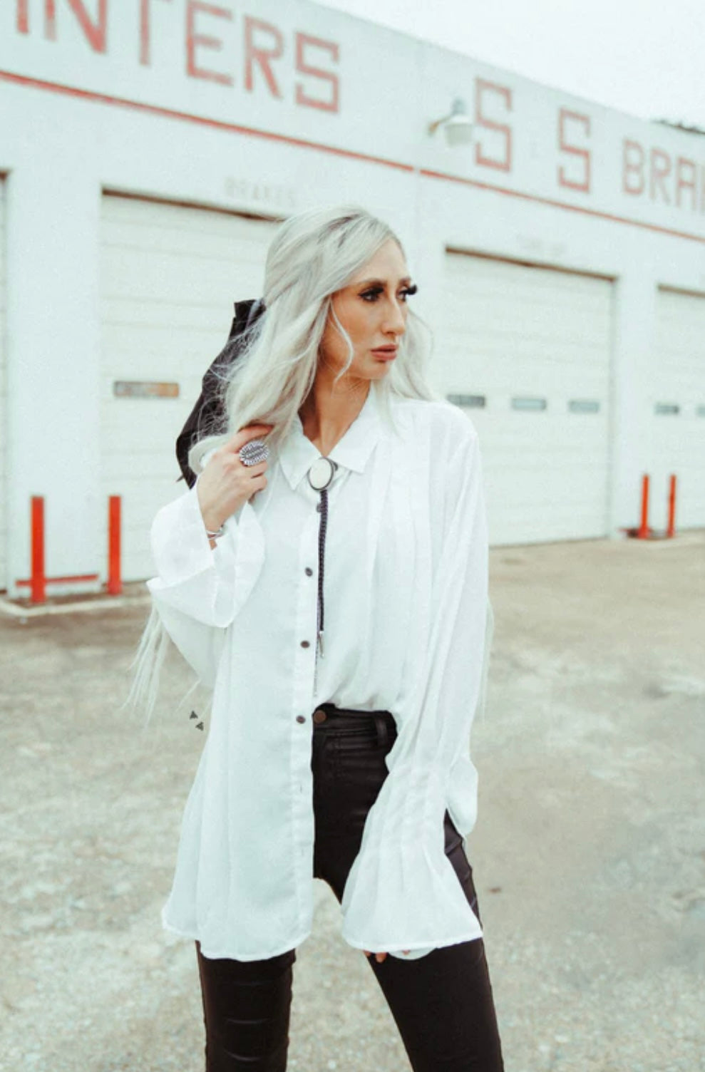 pair it with a cool jacket and the bell sleeves peeping out the sleeve is just a WHOLE MOMENT.